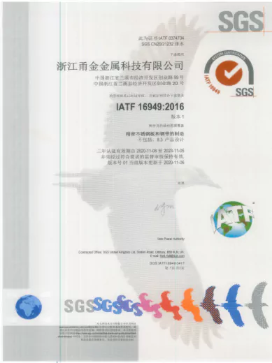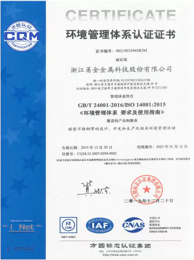 建立了全面有效的ISO9001质量管理体系和IATF16949质量管理体系,制定高于国家的企业标准,注重品质提升,客户认同度高,从而建立了较好的甬金品牌。